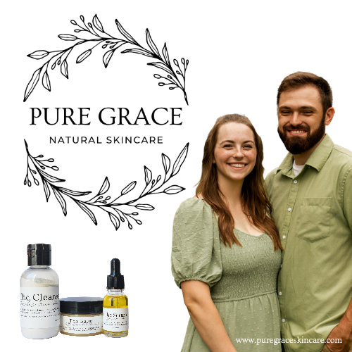 Pure Grace Natural Skincare was created by Danielle Dempsey. Based on a peaceful rural acreage in northeast Missouri, Danielle handcrafts every product with the same love and intention she puts into caring for her own family. Each formula is carefully researched, tested, and crafted to nourish the skin without unnecessary chemicals or high-end price tags. Powerhouse ingredients that are multi-use and beneficial for all skin types deliver all the results you want with half the ingredients.